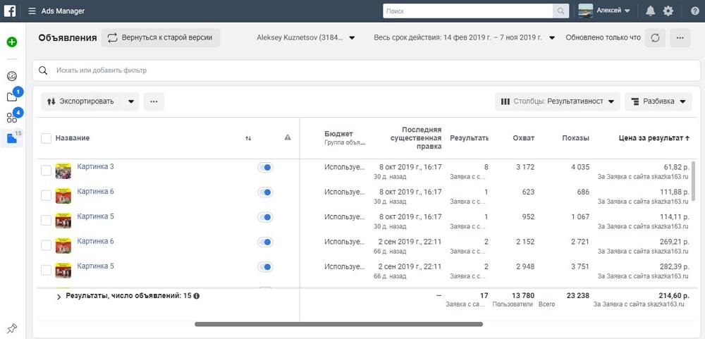 Сейчас настраиваю, также, таргетинг в Instagram.